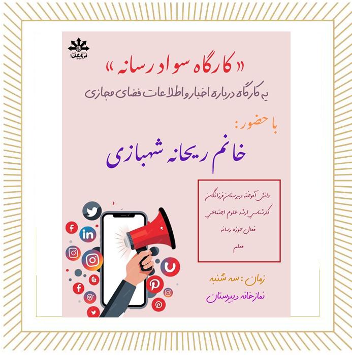 گزارش مصوراز برگزاری کارگاه سوادرسانه باحضورسرکارخانم ریحانه شهبازی